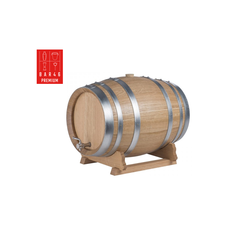 Whether you're a mixologist, a bar equipment wholesaler, or simply looking for a bar gift, this Premium oak barrel impresses with both form and function. It includes a matching oak stand and a spigot for easy serving.