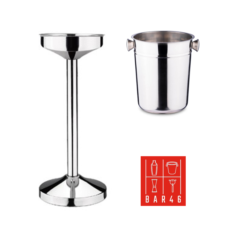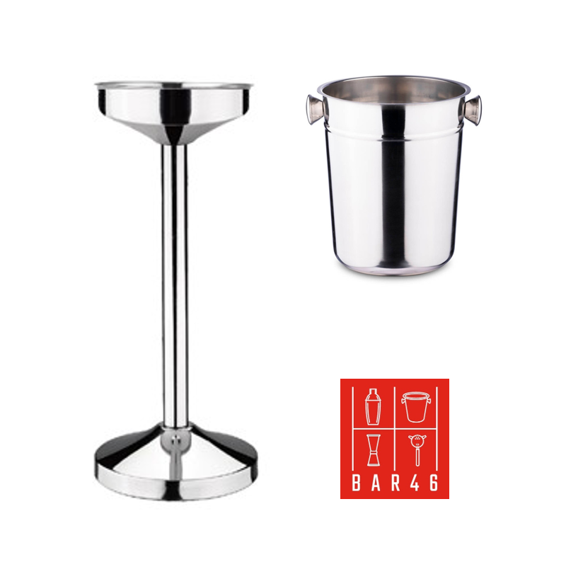 Professional table-side champagne presentation set with a stable stainless steel stand and a polished 6 L champagne bucket with knob handles for easy carrying. Ideal for hotels, restaurants, bars, and events—great option when you want to buy bartender equipment in Dubai with reliable quality and stock.