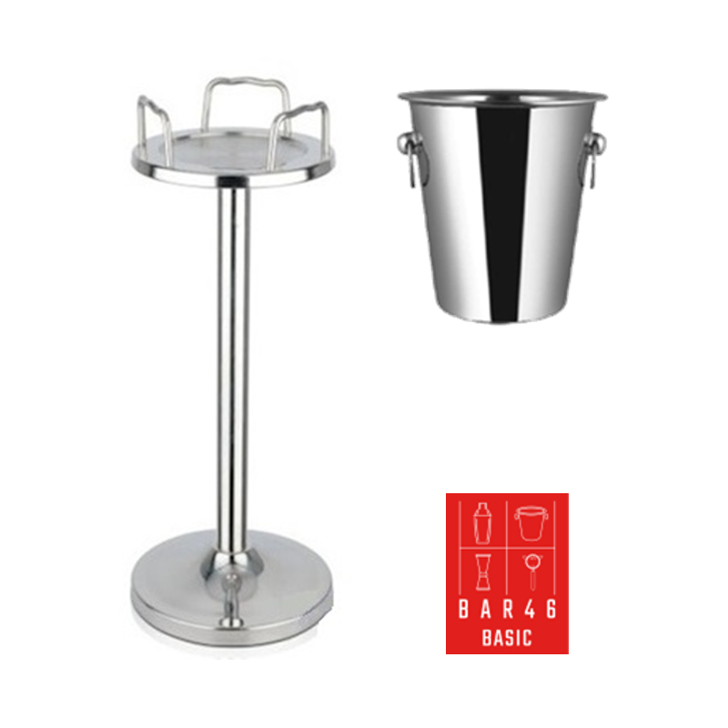 Professional table-side wine and champagne service set with a stainless steel tulip stand and a 4 L ring-handle wine bucket for easy carrying and fast refills. Ideal for hotels, restaurants, bars, and events—excellent option when you want to buy bartender equipment in Dubai with reliable quality and stock.