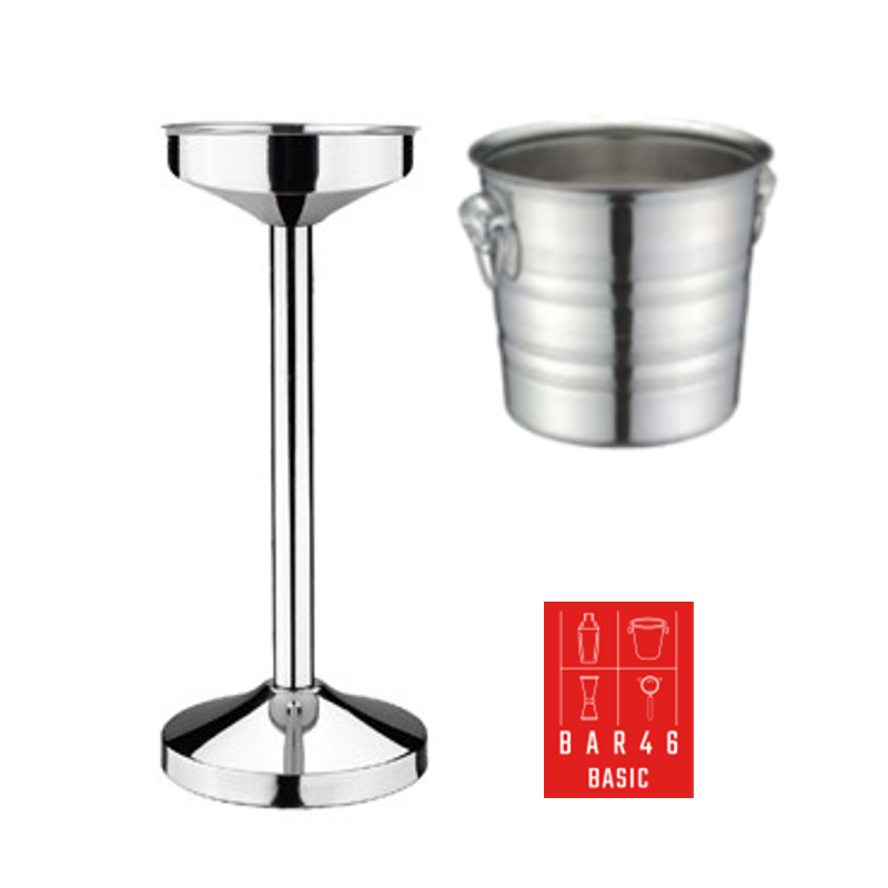 Professional table-side champagne service set with a stable stainless steel stand and a polished 5 L champagne bucket with ring handles for easy carrying. Ideal for hotels, restaurants, bars, and events—excellent option when you want to buy bartender equipment in Dubai with reliable quality and stock.