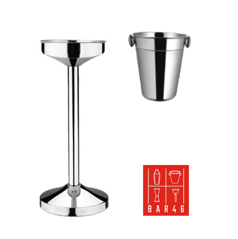 Professional table-side wine and champagne presentation set with a stable stainless steel stand and a polished 4 L wine bucket with knob handles for easy carrying. Ideal for hotels, restaurants, bars, and events—excellent option when you want to buy bartender equipment in Dubai with reliable quality and stock.