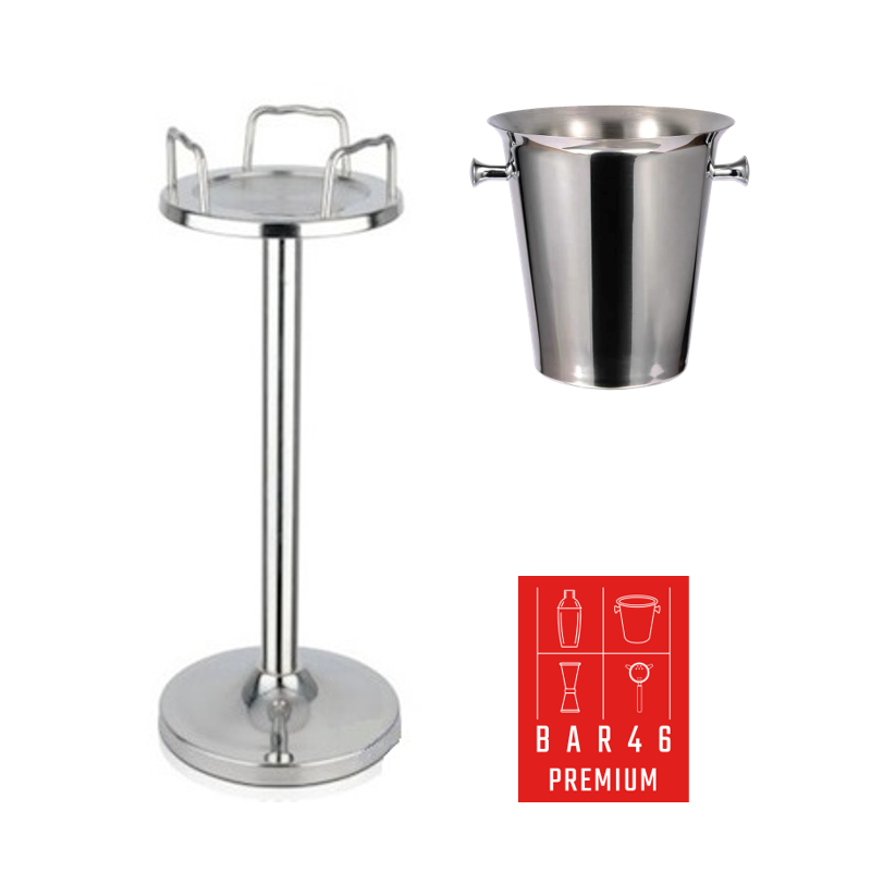 Professional table-side wine and champagne presentation set with a stainless steel tulip stand and a premium 5 L wine bucket with knob handles for easy carrying. Ideal for hotels, restaurants, bars, and events—smart option when you want to buy bartender tools in Dubai with reliable quality and stock