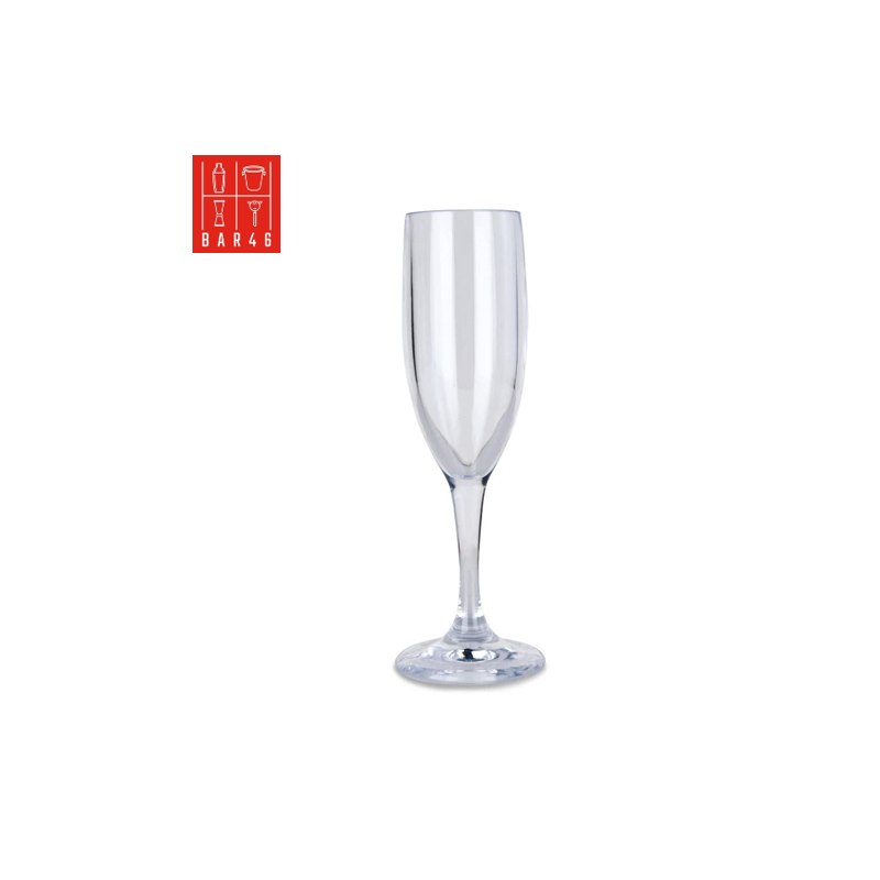 Elegant and durable acrylic champagne flute. 180ml (6.5oz) capacity for prosecco, cava, and sparkling wine. Ideal for events, hotels, restaurants, and outdoor pool service.